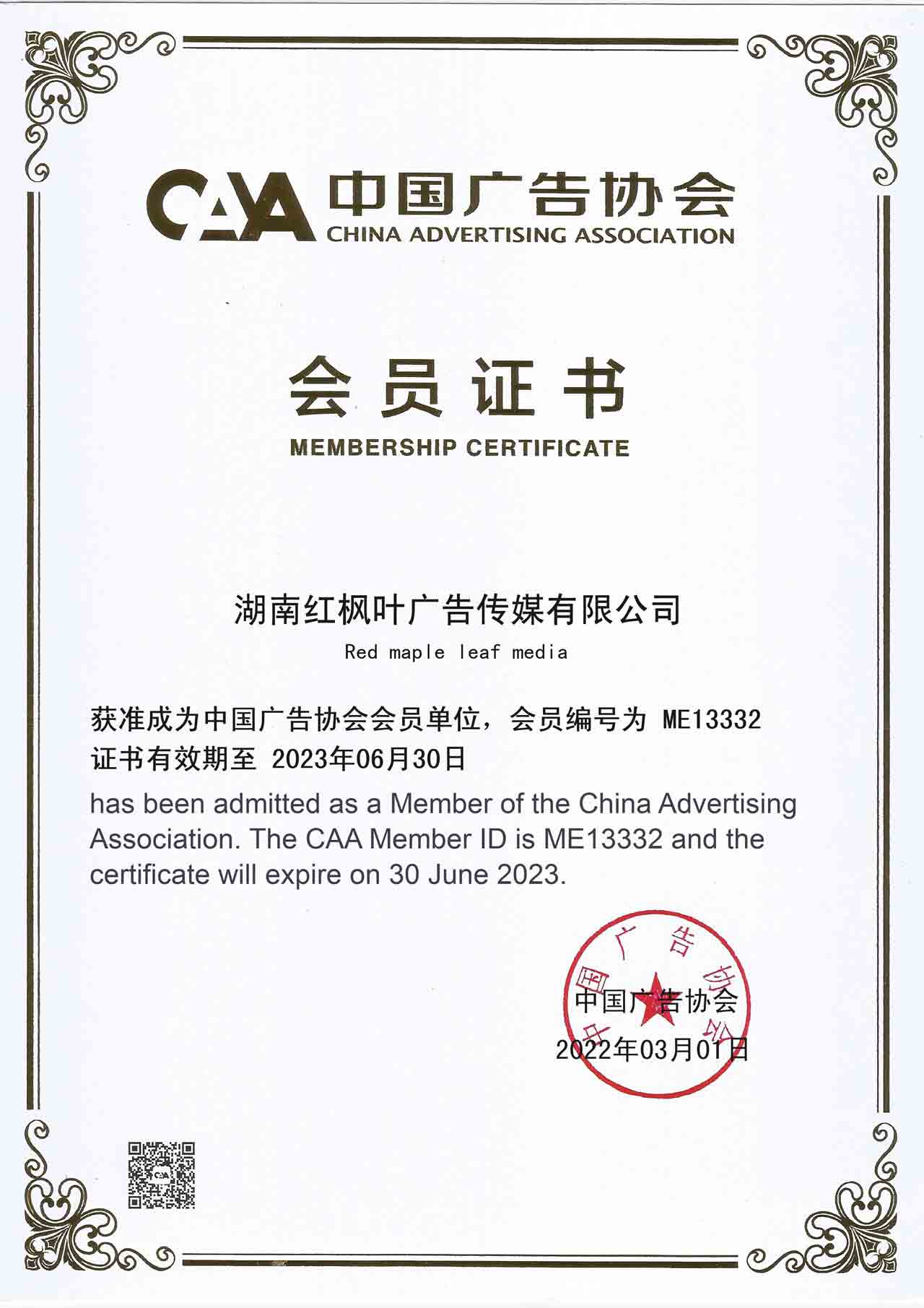 紅楓葉傳媒正式加入中國廣告協(xié)會
